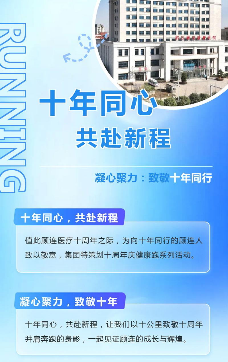 十年征程,是数千个日夜的坚守,也是无数脚步的接力。这场健康跑不仅是体能的挑战,更是一场精神的共鸣:十公里赛道串联起顾连医疗十年的发展足迹,奔跑的每一步都印证着“同心同行”的信念。正如活动终点飘扬的横幅所书:“以今日之汗水,浇灌未来之繁花。”全体武汉顾连人将以此次活动为起点,继续秉持“患者至上”的初心,以更饱满的热情、更专业的服务,向着下一个十年的星辰大海,携手奋进!
