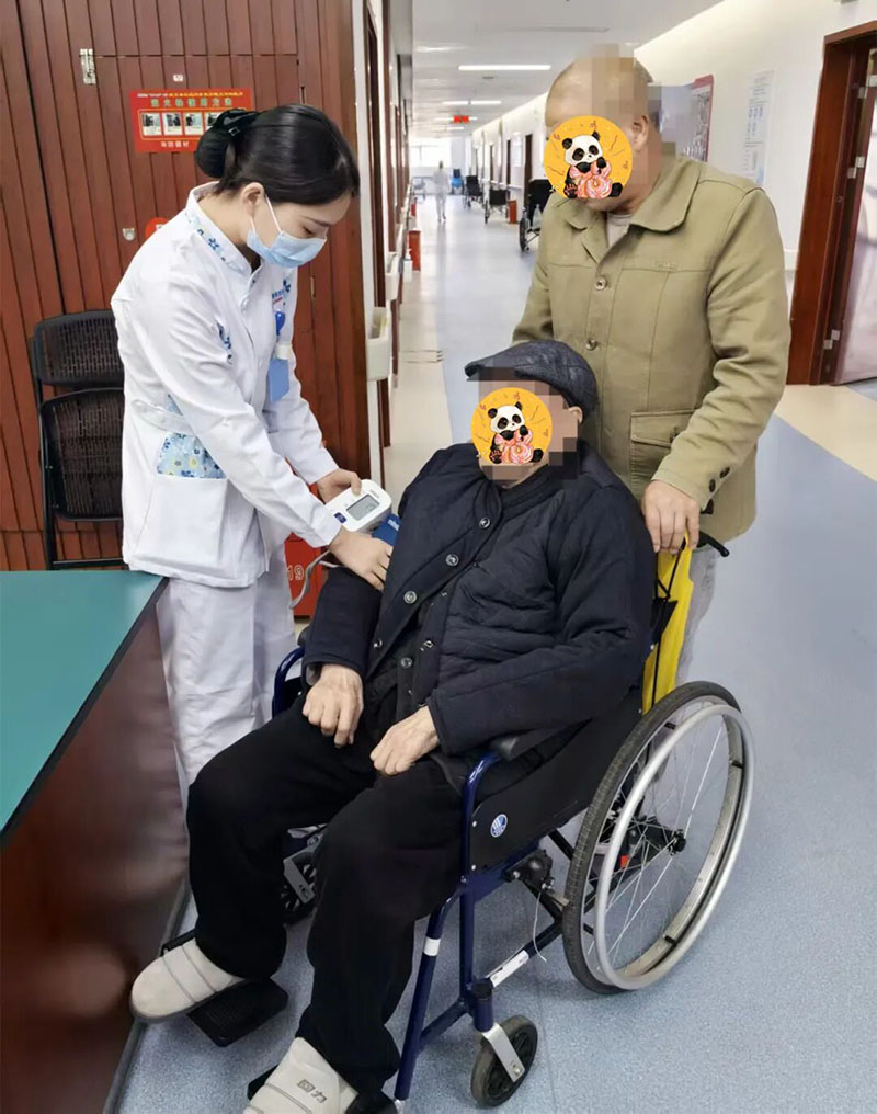 图为康复五病区护士胡楠为患者测量血压