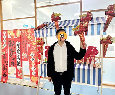 步入活动现场,仿佛置身于一个梦幻般的元旦世界。五彩斑斓的气球、闪烁的灯光、精美的装饰,每一处细节都透露着节日的喜庆氛围。活动现场特别设置了元旦新年打卡区,患者及家属们纷纷在这里签到打卡,并拍照分享到朋友圈即可领取精美礼品。
