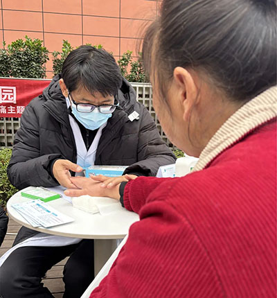 彭主任充分发挥其在康复治疗方面的专业技能,为居民们进行现场评估,针对颈肩腰腿疼痛等常见问题,提供专业的康复指导和运动建议,帮助居民们改善身体功能,提高生活质量。并运用中频仪器为居民们现场缓解疼痛。许多居民在体验后都表示疼痛得到了明显的缓解,对彭主任的专业技术赞不绝口。