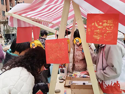 文化互动盖章区更是热闹非凡。幸运套圈圈、趣味猜灯谜、新春剪纸 DIY、手工信封 DIY、童趣涂鸦、卡通画板等游戏项目吸引了众多居民的参与。